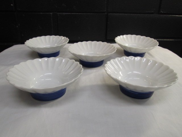 - h5456 未使用保管品 宝山 小皿5点セット 和食器 和皿 薬味皿 菊割 丸皿 高台 陶器 菊皿 小鉢 菊花皿 菊形