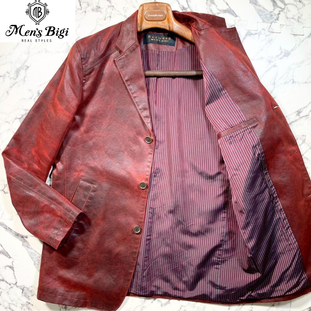 - 【狂気の色気】極美品●メンズビギ Radmess Fレザー ジャケット テーラード ブラック ワインレッド 赤黒 アウター ブルゾン メンズ ML位
