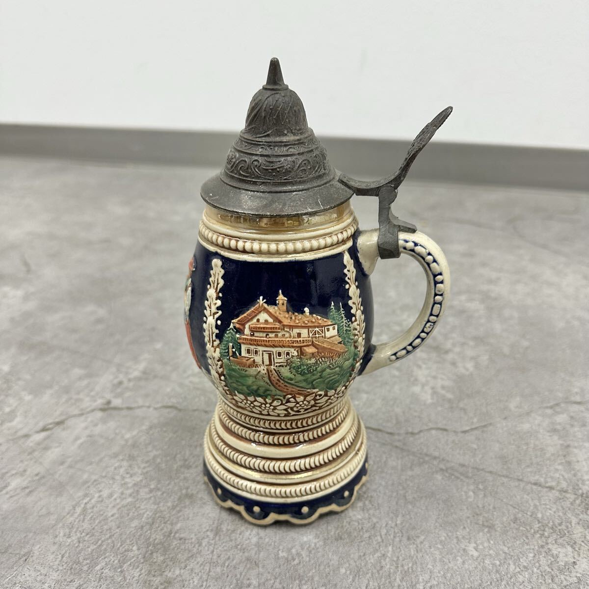 - SNT1085 アンティーク当時物 ドイツ製 蓋付き ビアジョッキ ビアマグ オルゴール付き 陶磁器 食器 伝統技術 ビンテージ インテリア