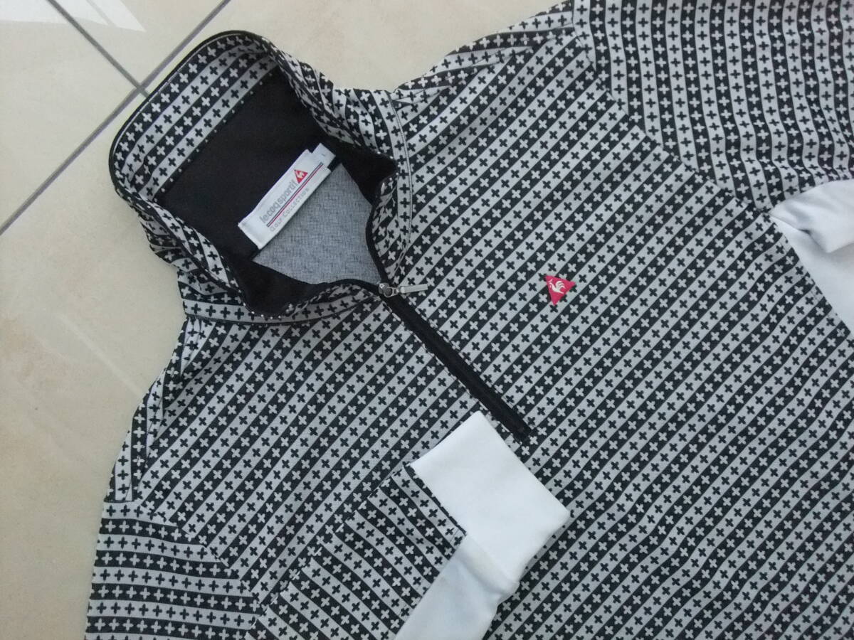 - Le coq sportif GOLF ルコックゴルフ♪L♪ボーダー柄ハーフジップロゴ刺繍&文字刺繍ストレッチ長袖ハイネックシャツ♪㈱デサント 美品