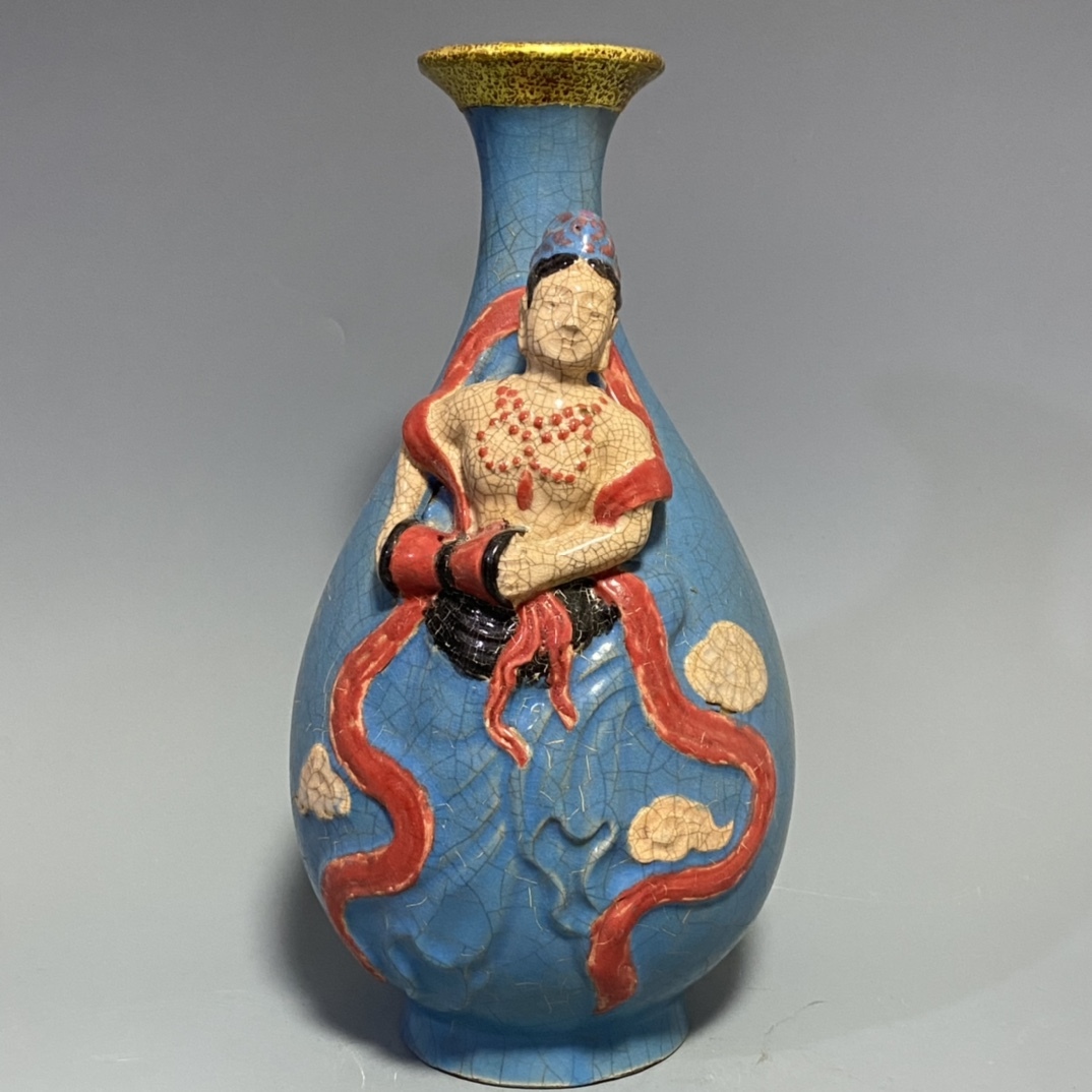 > 館蔵 宋代 描金 飛天仕女 玉壺春瓶 賞瓶 古陶瓷品 陶藝 古董品 時代物 賞物 貴重 稀少珍品 中国古美術 古美味 蔵出