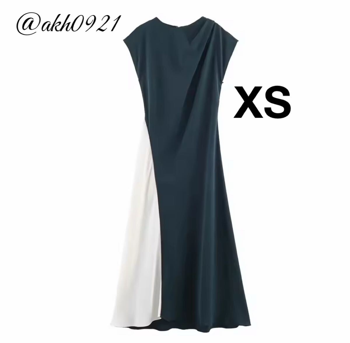 > 新品未使用★2025 A/W 秋新作★vintage ヴィンテージ レトロ バイカラー ロング ワンピース ドレス XSサイズ レディース★ZARA 好きな方に