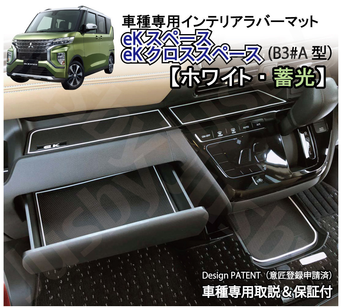 - 三菱 eKスペース/ekクロススペース専用 インテリアラバーマット (白 ホワイト&蓄光)ドアポケット フロア マット パーツアクセサリー