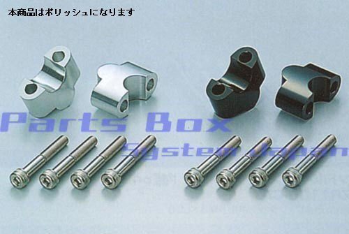 | 商品内容 | ○カラー:ポリッシュ ○25mmアップ ○ソケットボルトM8×L55 ○適合ネジ穴間のピッチ 31.5mm~35mm ○ノーマルハンドル、ケーブル、ブレーキホースのままで少しポジション変更を…とお考えの方におすすめします。ボルトオン、しかも短時間で取付けできます。 ○アルミ合金削り出しポリッシュアルマイト ○M8ソケットボルトはステンレス製 |
