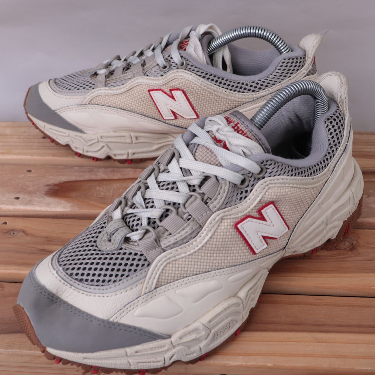 - z2833【ML801NCX】ニューバランス US7 25.0cm/ライトベージュ グレー 白 赤 newbalance メンズ ユニセックス スニーカー 中古