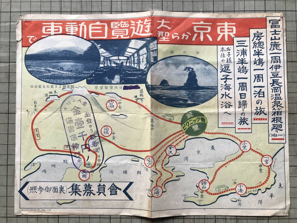 - 紙モノ『東京から大型遊覧自動車で 富士山麓一周伊豆長岡温泉箱根 房総半島 三浦半島 逗子海水浴 会員募集チラシ』遊覧ピクニック会 00543