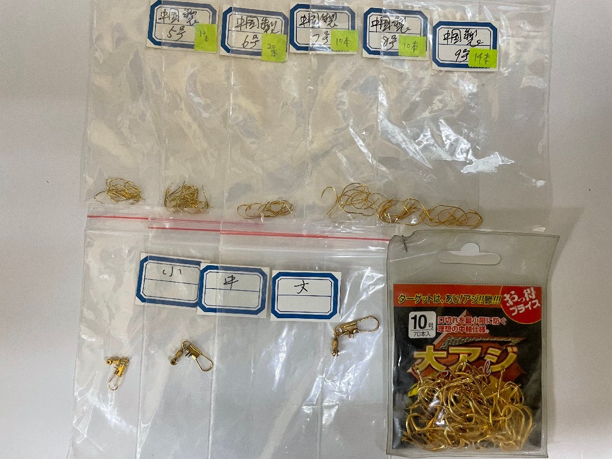 - アジ針 5号 6号 7号 8号 9号 中国製/ インターロックスナップ付 サルカン(大中小) 金色/ キンリュウ 大アジ 10号 70本入9種 H116