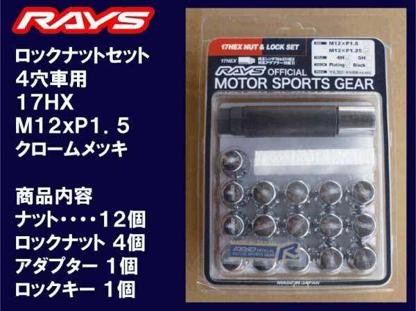 > 送料無料★レイズ 4H ロックナットセット 60°テーパー座 17HEX M12XP1.5 メッキ/マツダ デミオ ロードスター