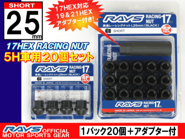 - RAYS/レイズ レーシングナット L25 17HEX M12x1.5 20本入 ショートタイプ /トヨタ GRヤリス スープラ MR2 チェイサー マークⅡ