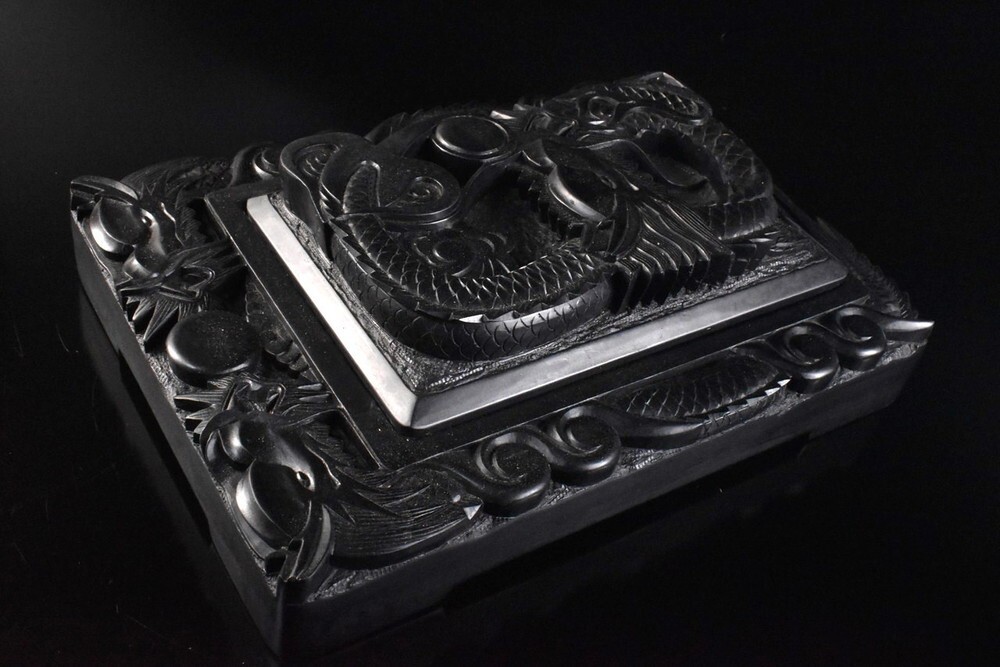 - 【雲】某収集家放出品 石製 雲龍彫刻硯 古美術品(書道具墨筆石) F8473
