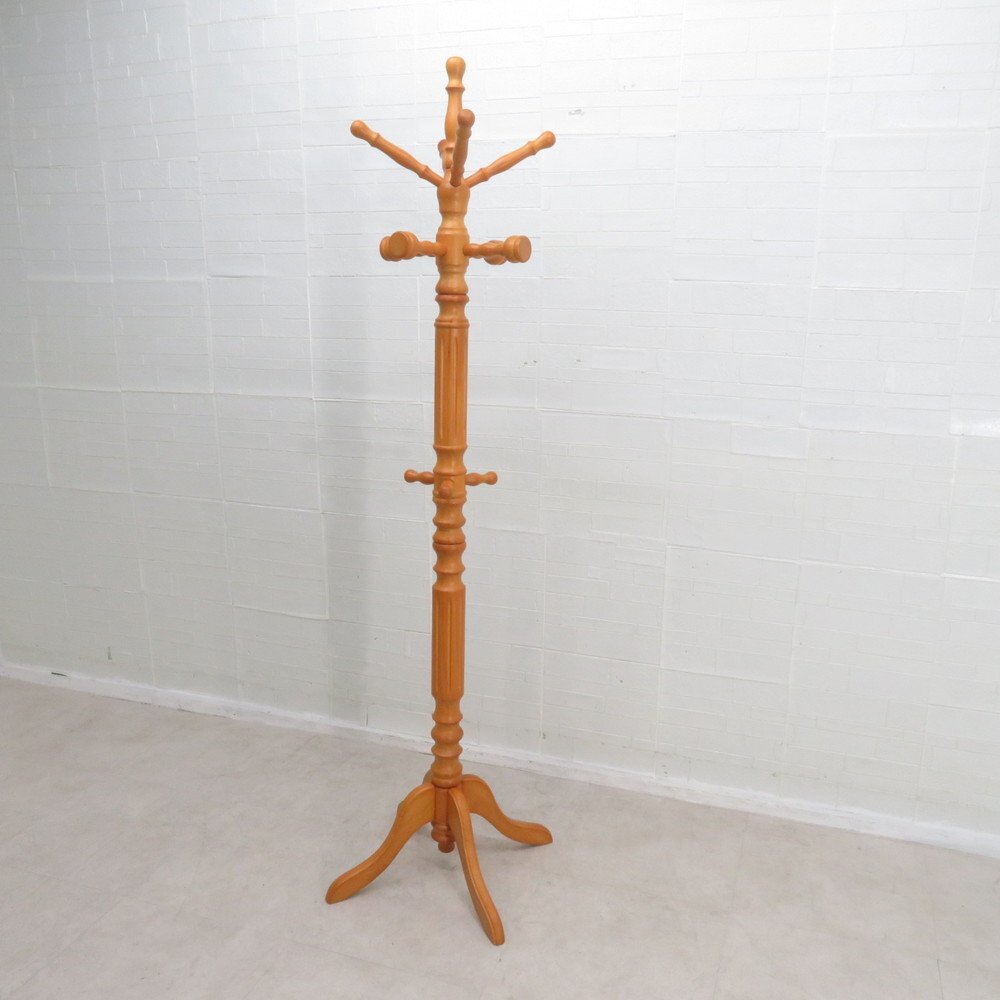 - コートハンガー ナチュラル 木製 玄関 会議室 アンティーク風 ハンガーラック ポールハンガー パイプハンガー YH18605 中古オフィス家具