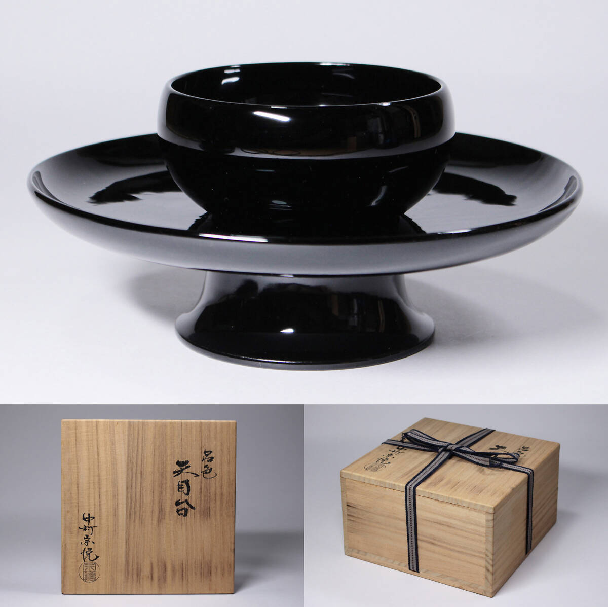 - 中村宗悦 呂色 天目台 共箱 茶道具 検索: 懐石道具 茶懐石 料理皿 和食器 向付 会席道具 会席料理 割烹 茶事