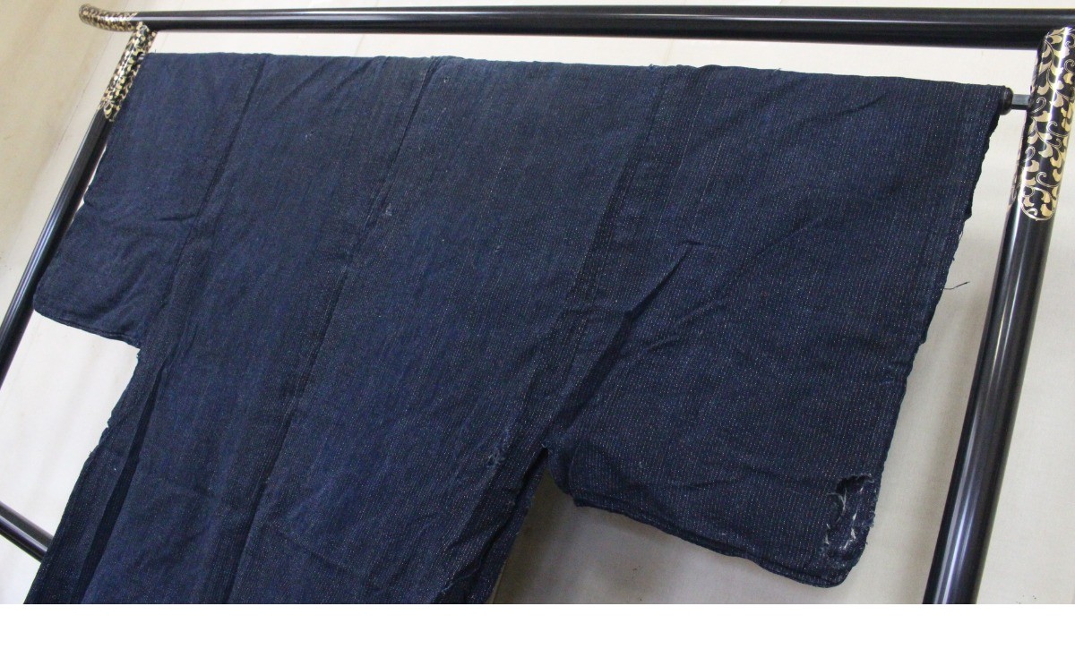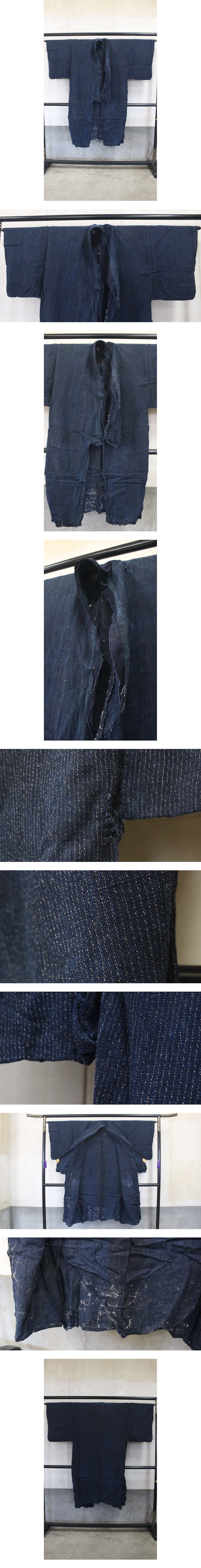 - 藍染木綿 絣 時代物 日本着物和服 古布アンティーク生地 ツ18