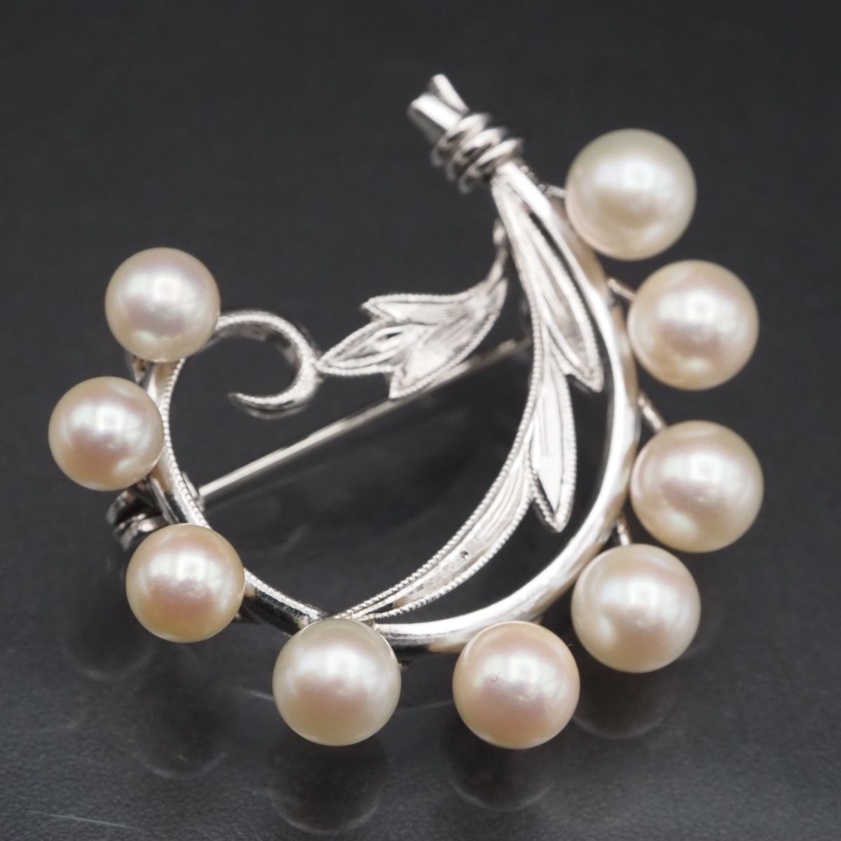 - G911 本真珠 5.7-6.7mm9珠 パール STERLING刻印 ブローチ デザイン シルバー コサージュ 6月誕生石