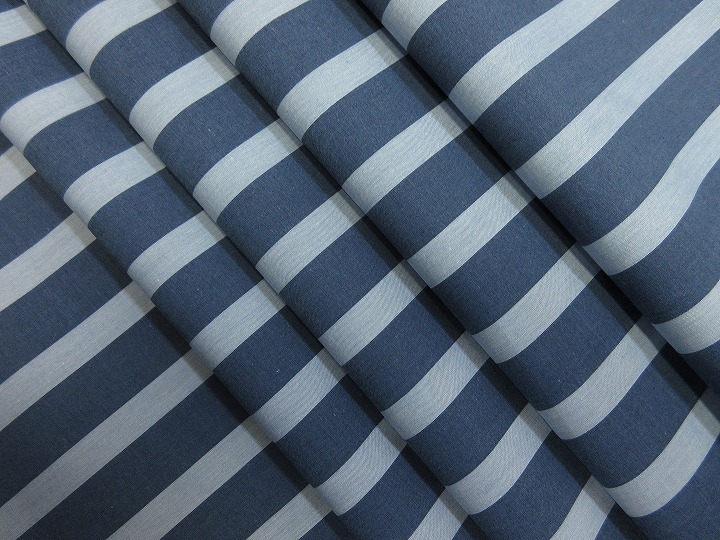 > 綿100 先染 ストライプ シャツ ワンピース 薄地 巾115cm 長4m ブルー系 [B974]