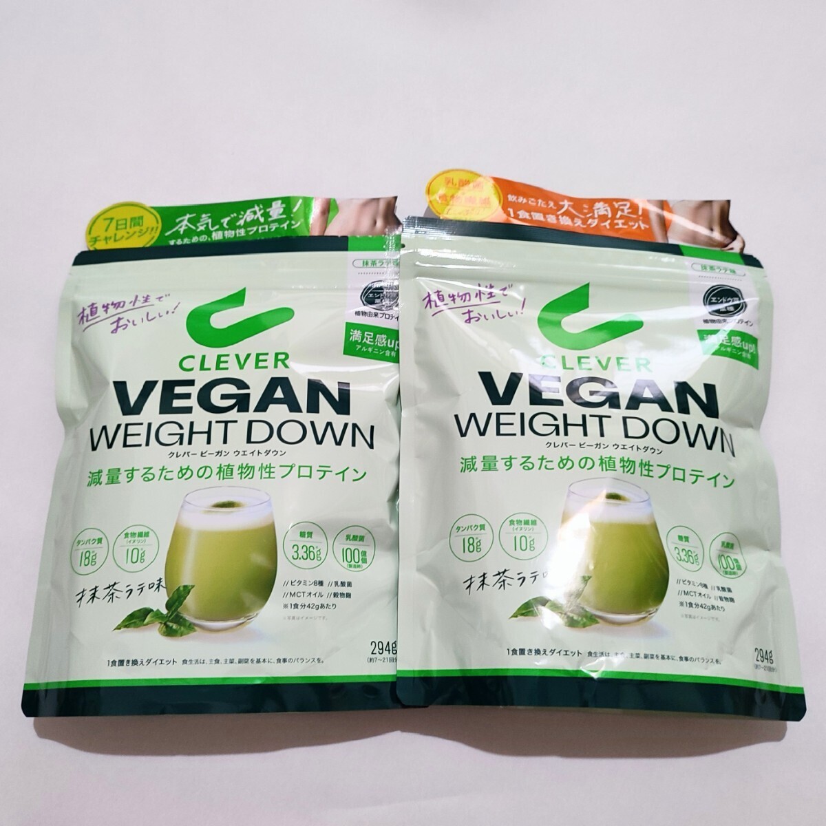 - 2袋 ネイチャーラボ クレバー ビーガンプロテイン ウェイトダウン 抹茶ラテ味 294g オーガニック CLEVER VEGAN ソイプロテイン