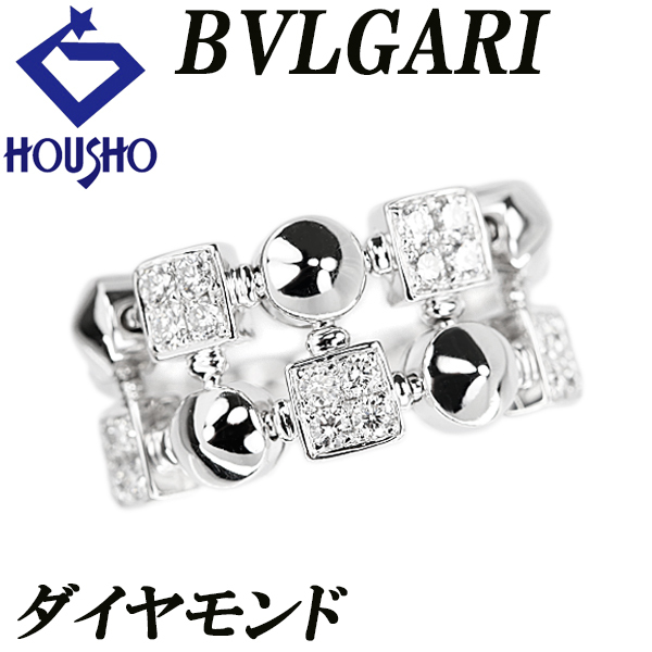 > ブルガリ ダイヤモンド ルチア 2ロウ リング K18ホワイトゴールド BVLGARI 幅広 太め 2連風 透かし 送料無料 中古 宝正 902920