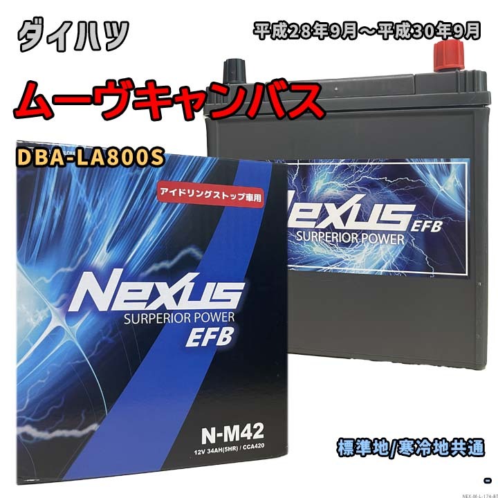 > バッテリー NEXUS N-M42 ダイハツ ムーヴキャンバス DBA-LA800S 平成28年9月~平成30年9月 対応 M-42 互換 174