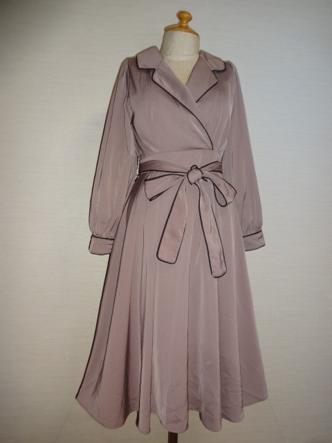 - An MILLEローズピンク色上身カシュクール型黒パイピングW切替ベルトリボン付OP