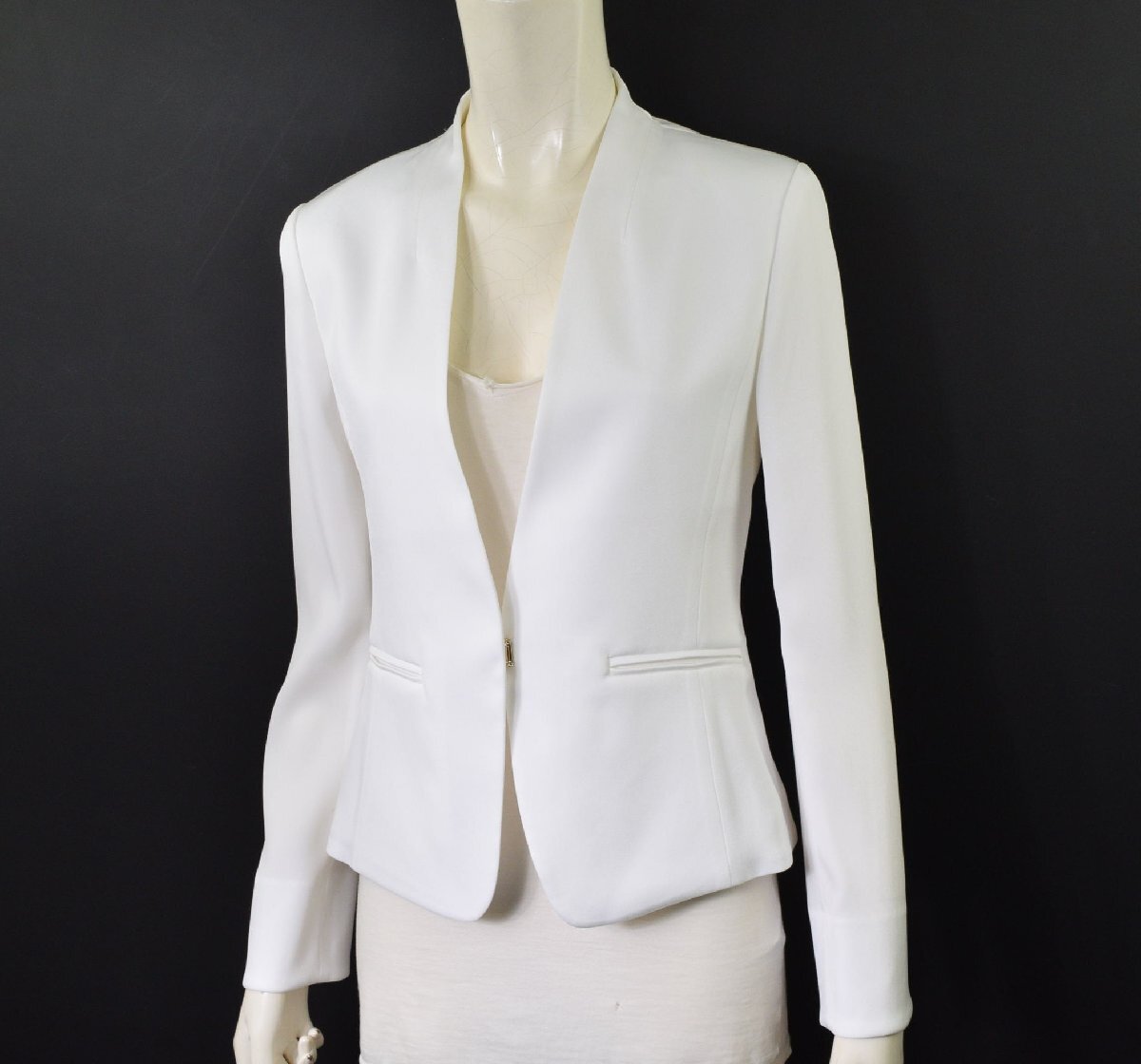 > 2063-25Q0390★ピンキー&ダイアン★美品 ドライタッチ ダブルクロス素材 ノーカラージャケット 38 白ホワイト 37400円 PINKY & DIANNE