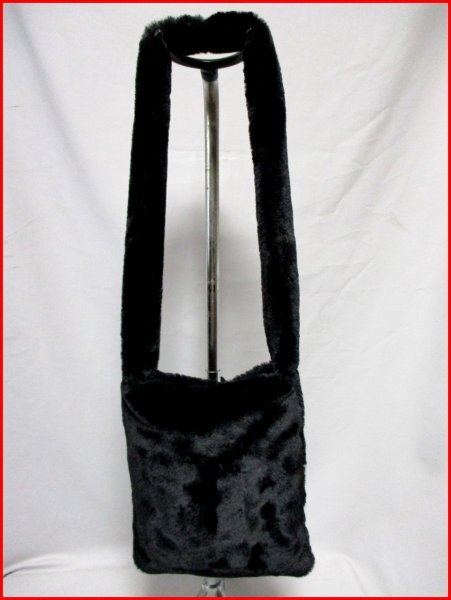 - ハンドメイド フェイクファー ショルダーバッグ◇BK 内部 レザー H27cm