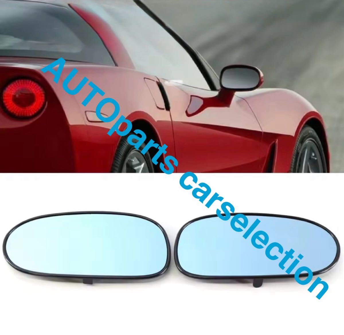 - 送料無料・ブルーガラス【Chevrolet Corvette C6 2005-2013】ドアミラーガラス ヒーター付き ブルーミラー 防曇・霜取り機能付き 加熱式