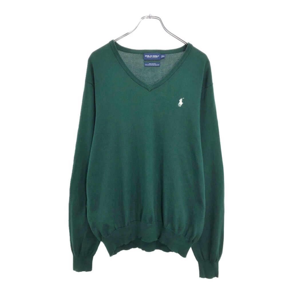 > 90年代 POLO GOLF ポロゴルフ ラルフローレン Vネック コットンニット セーター グリーン(メンズ XL)中古 古着 V5738