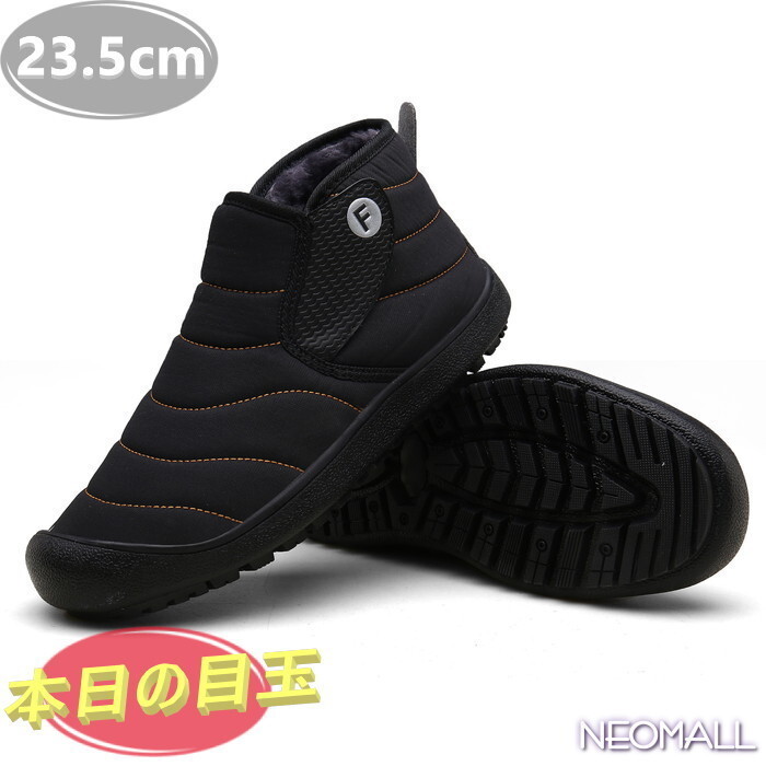 > ユニセックス スノーシューズ 【869】 23.5cm ブラック ムートンブーツ スニーカー ウィンターブーツ 裏起毛 防水 防寒 防滑 冬用靴 綿靴