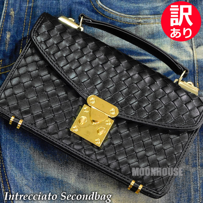 - 送料無料 訳あり 特価 イントレチャート 編み込み セカンドバッグ メンズ オラオラ系 チョイ悪系 クラッチバッグ ハンドバッグ ブラック■