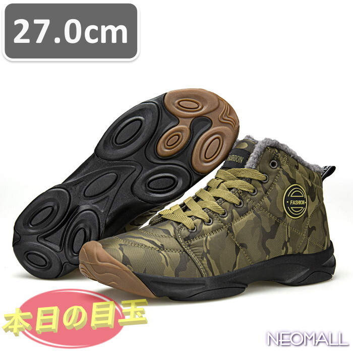 - メンズ スノーシューズ 【864】 27.0cm 迷彩グリーン ムートンブーツ スニーカー ウィンターブーツ 裏起毛 防水 防寒 防滑 冬用靴 綿靴