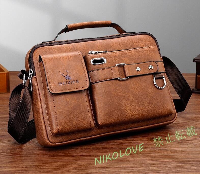 > ショルダーバッグ (F302) メンズ 大容量 斜めがけ メッセンジャーバッグ レザー 収納 手提げ式バッグ 多機能 通勤 出張 就職活動 ブラウン