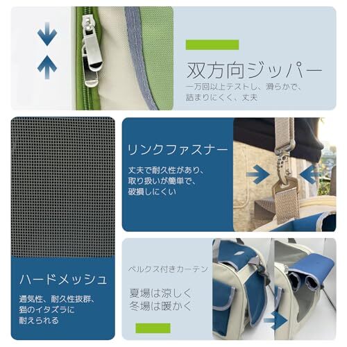- グリーン SunStarsPets ペットキャリー 猫・小犬・ウサギ用 持ち手補強 折りたたみ式 カーテン付き 変形しない 折りた