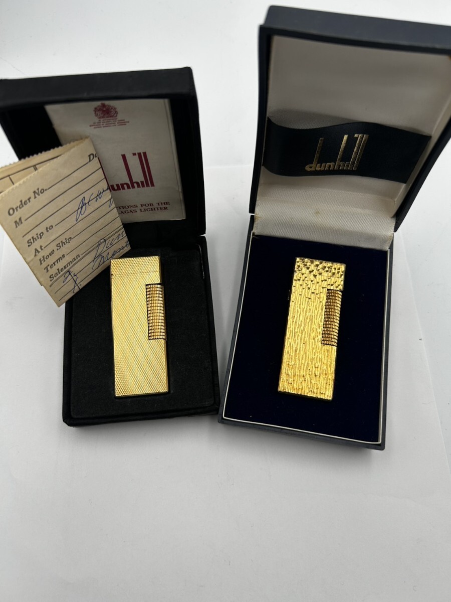 - 1円スタート dunhill ダンヒル ガスライター ローラー式 ゴールドカラー 2点セット 1点火花○ TK1022-1