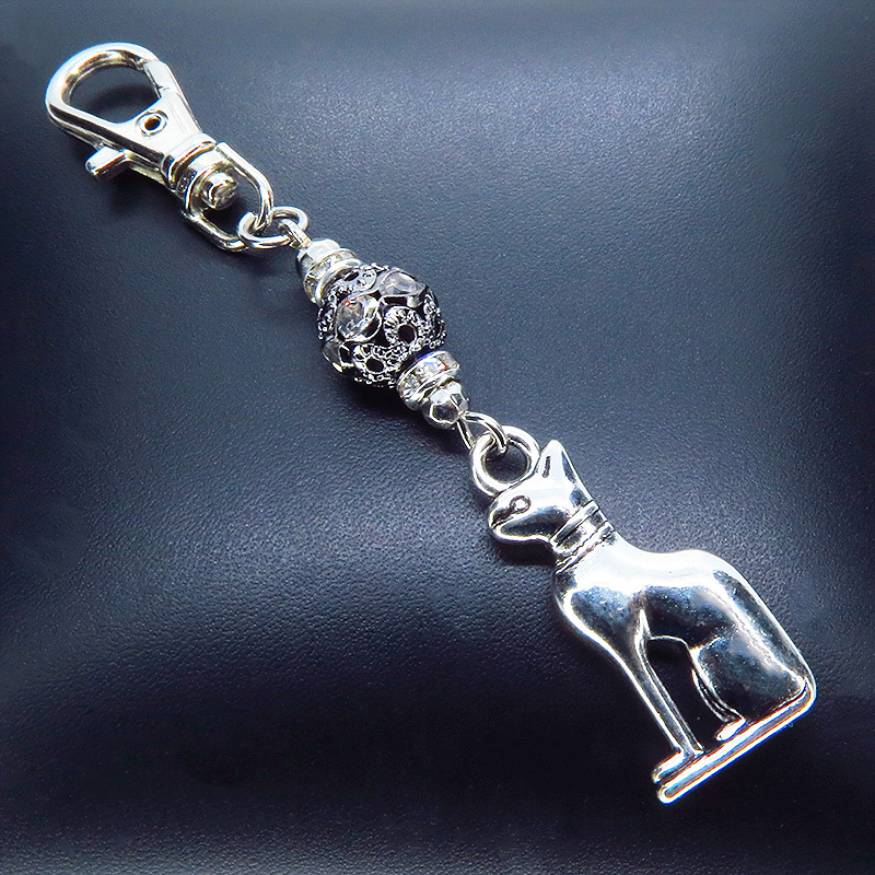 - バステト 猫の女神 アンティークシルバー メタルチャームと組合せたオリエンタル調キーホルダー バッグチャーム