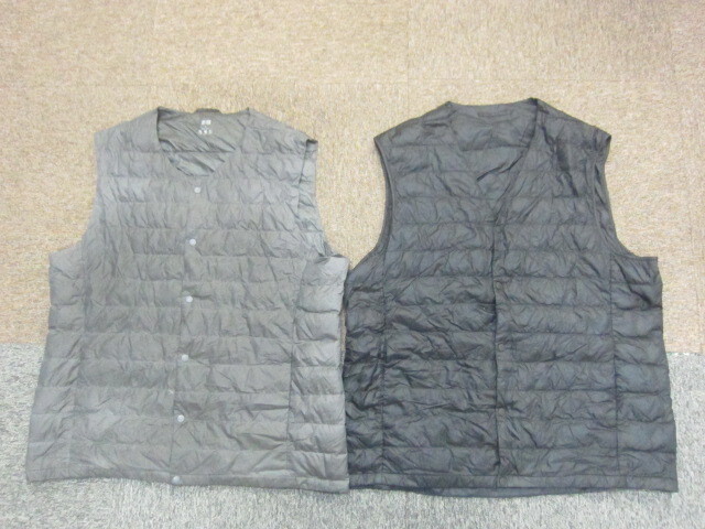 - ユニクロ ノーカラーウルトラライトダウンベスト 2枚セット メンズXL LL 襟なしダウンベスト 軽量インナーダウンジャンパー ライナー10009
