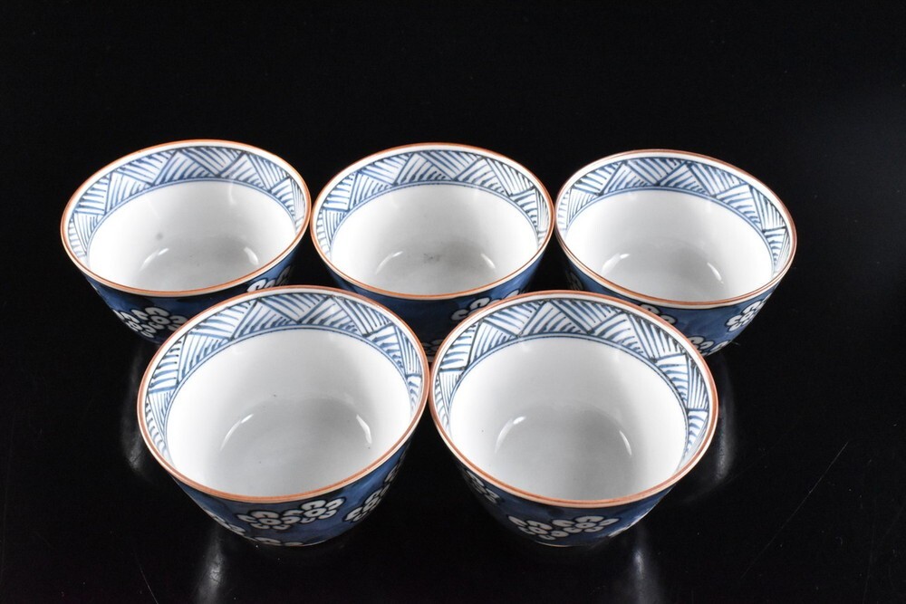 > 【雲】某名家収蔵品 清水 染付 花絵付 煎茶碗 5客 在銘 古美術品(旧家蔵出) F8578