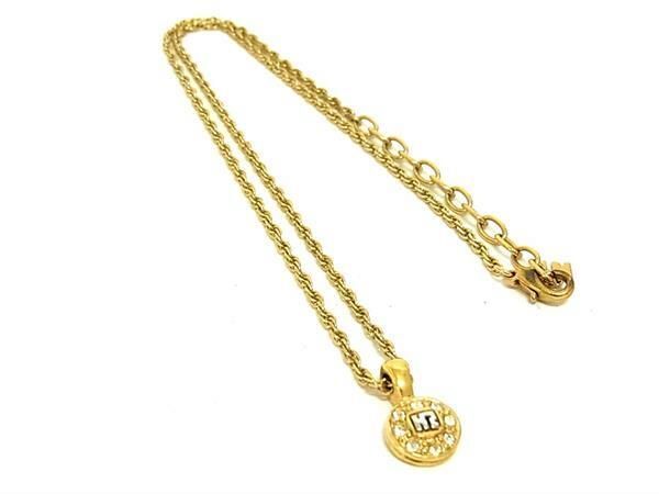 - ■美品■ NINA RICCI ニナリッチ ラインストーン ロゴモチーフ ネックレス ペンダント アクセサリー レディース ゴールド系 DE4646