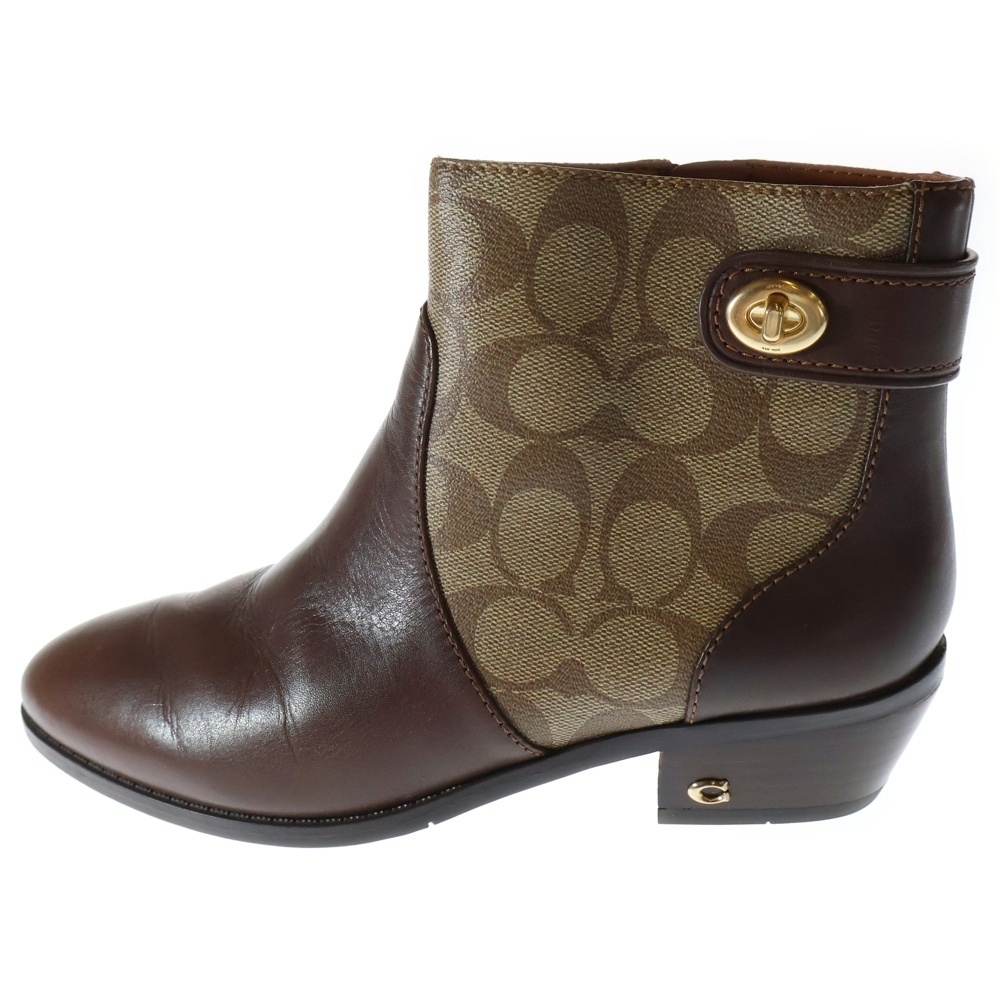 - COACH コーチ シグネチャー ターンロック キャンバス レザー サイドジップ ショートブーツ ベージュ/ブラウン レディース G5300