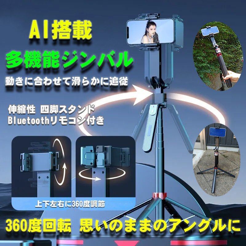 > ■●ジンバル GIMBAL Q185 4脚 A1自動識別 顔認識 自撮り Bluetoothリモコン付 最大180cm 360度トラッキング撮影 自動追従 7段階伸縮式/GB1