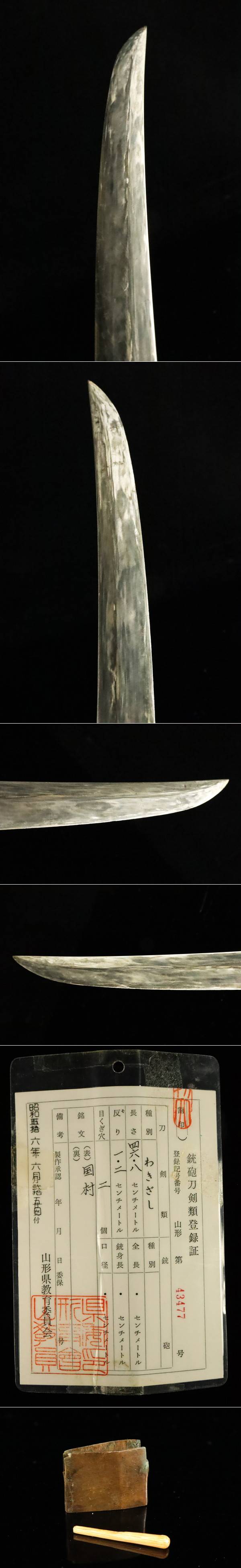 > 【ASAHI】時代武具 脇差 国村 菖蒲造り 46.8cm 白鞘 旧家蔵出品[710124qw]