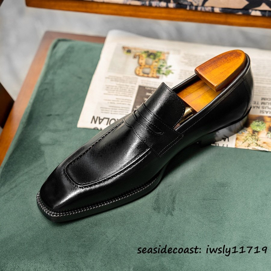 > 最高級*定価9万超 本革 レザーシューズ メンズ 職人手作り 彫り ビジネスシューズ ドレスシューズ 紳士靴 上質牛革 革靴 ブラック 26.0cm