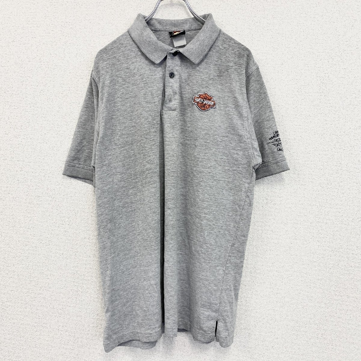- 古着 used HARLEY DAVIDSON ハーレーダビッドソン 半袖ポロシャツ ワッペン 刺 グレー 灰色