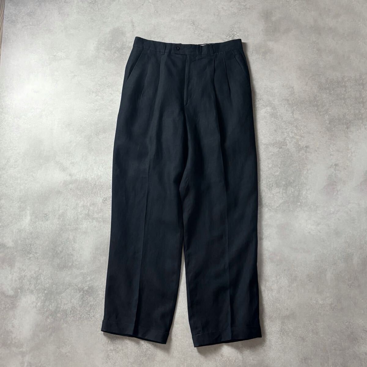 - HERMES イタリア製 ビンテージ ヴィンテージ エルメス ツータック リネン スラックス パンツ オールド MADE IN ITALY ボトムス