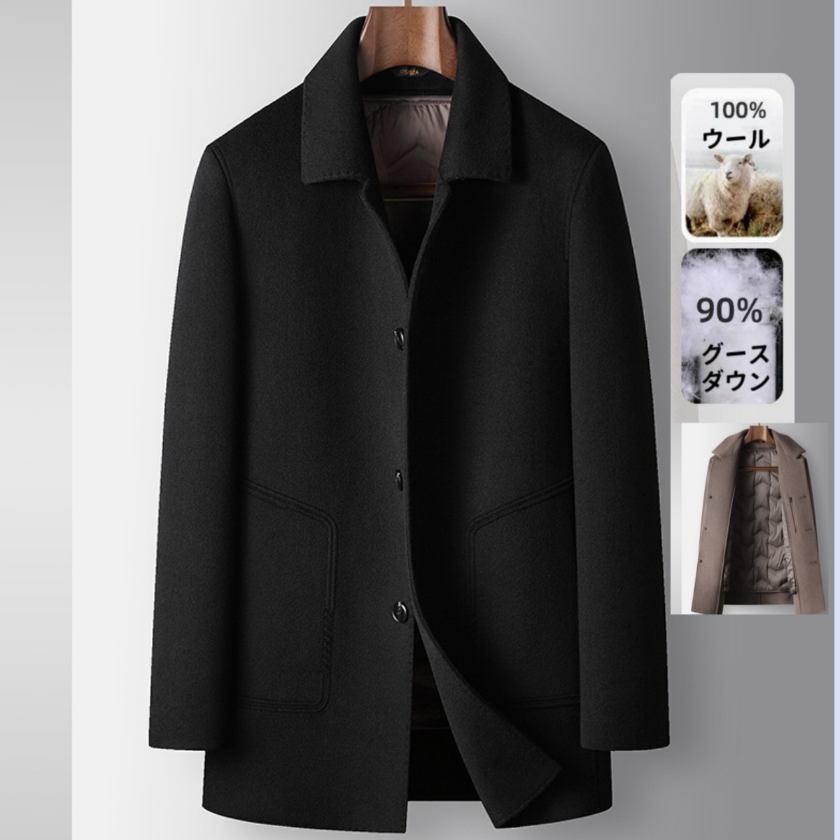 - ステンカラーコート ダウンコート ウールコート メンズ★新品 ダウンライナー ビジネスコート アウター【ML6866】黒 L