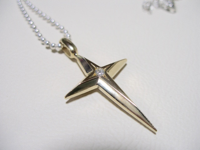 - 仁尾彫金『一つ星ダイヤゴールド十字星クロス』ハンドメイド137