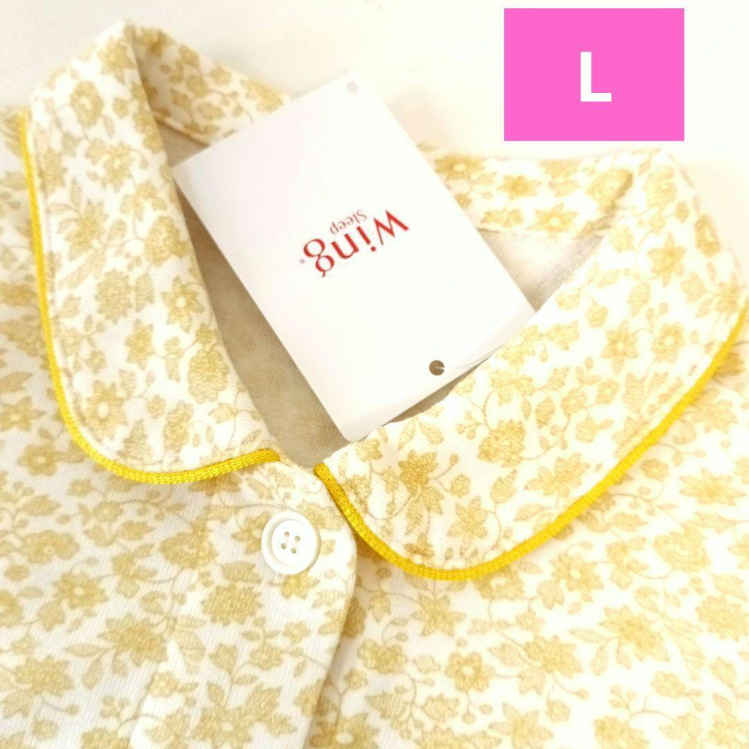 - 新品 L ウイング 裏パイル レディース パジャマ ルームウェア 綿棍 イエロー 花柄 長袖 長ズボン