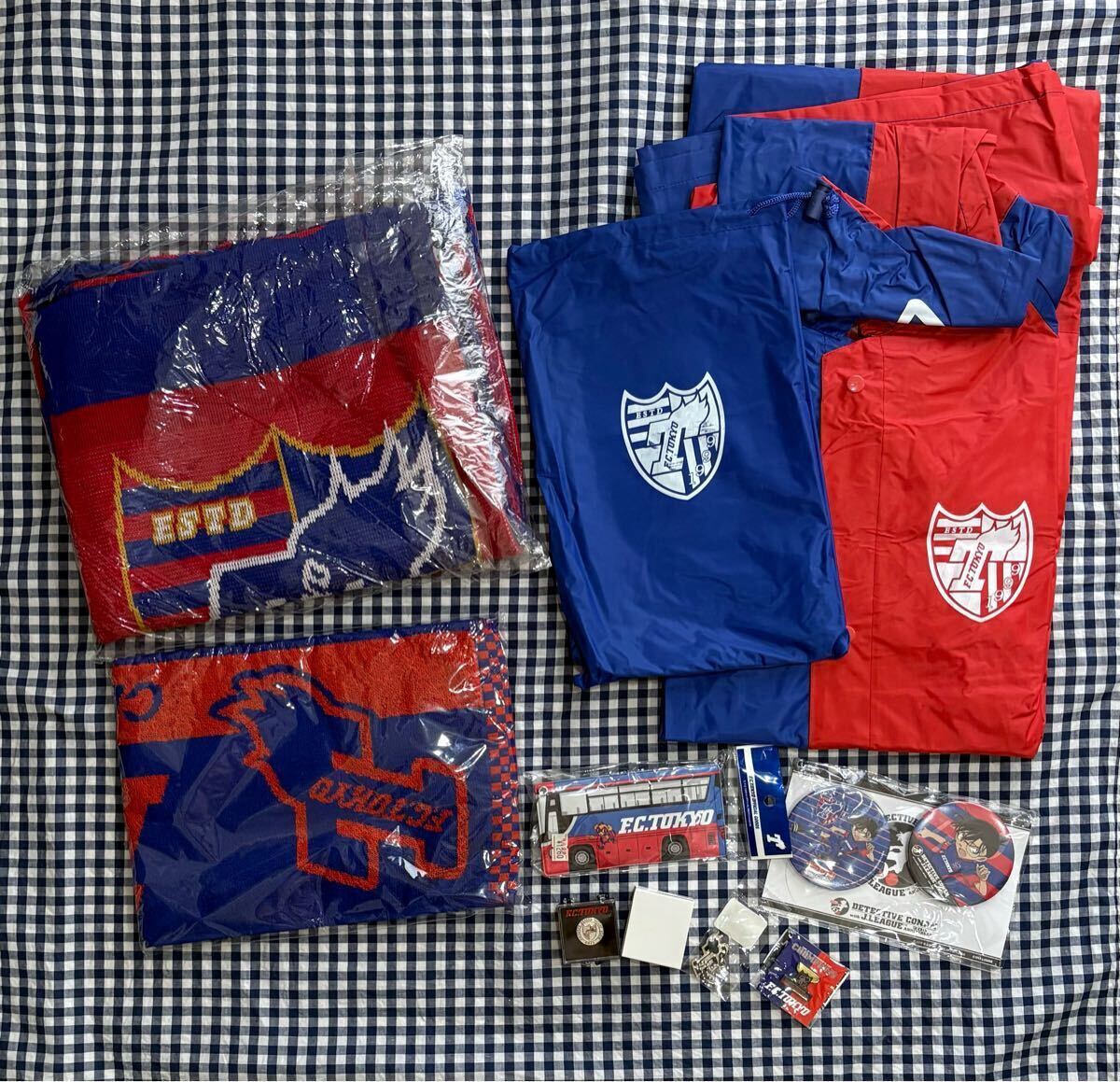 - 【直筆サイン入り】FC東京 グッズまとめ売り◆コナン缶バッジ・マフラー・レインコートなど計8点!