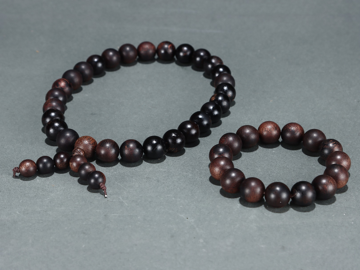 - ▽鴻▽清朝時代 珍材彫 手持 手串セット 箱付 非常に良い香り 時代物 中国古美術 骨董品