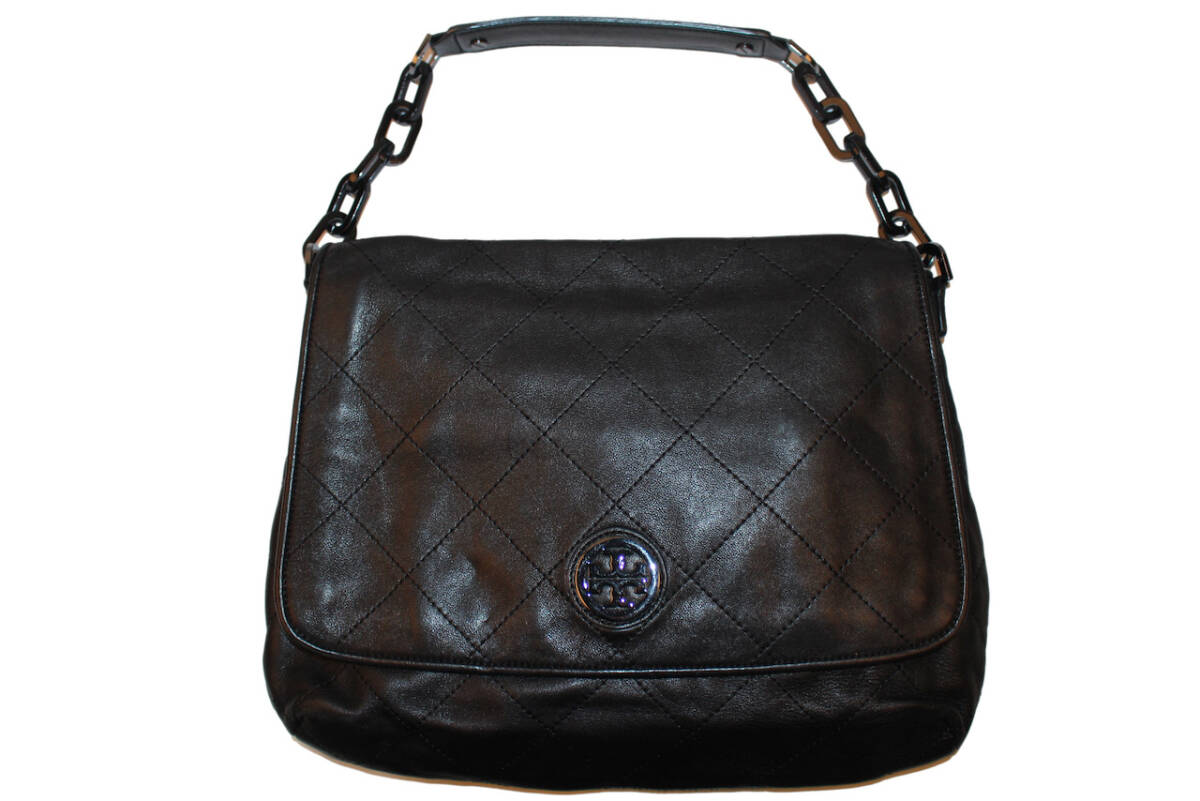 - TORY BURCH トリーバーチ ハンドバッグ ブラックレザーxブラックメタルチェーン kir