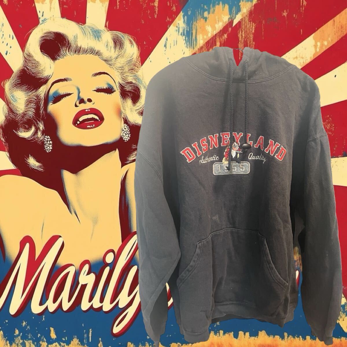 > Disneyland ミッキーマウス パーカー 黒 刺繍ロゴ 1955 ヴィンテージ調 Lサイズ相当 美品 裏起毛 パーカー